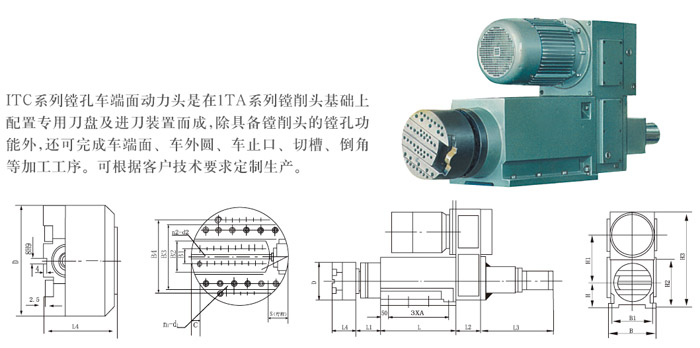1TC系列鏜孔車端面動(dòng)力頭是在1TA系列鏜削頭基礎(chǔ)上配置專用刀盤及進(jìn)刀裝置而成,除具備鏜削頭的鏜孔功能外,還可完車端面、車外圓、車止口、切槽、倒角等加工工序?筛鶕(jù)客戶技術(shù)要求制定生產(chǎn)。